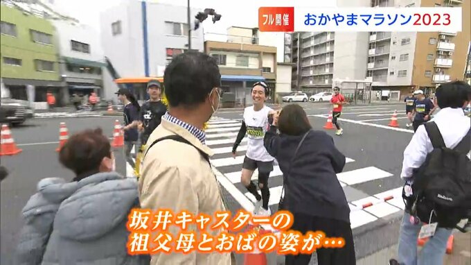 フィニッシュ直前、ジップアリーナ前で待っていたのは浅口市に住む祖父母とおばの3人です。