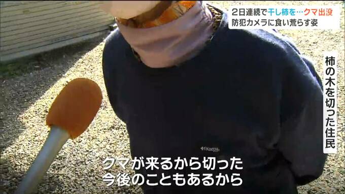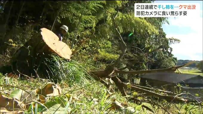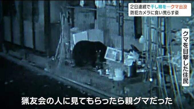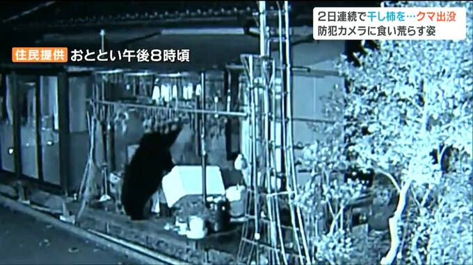 11日と12日の夜、宮城県大崎市の住宅敷地内にクマ1頭が2日連続で出没し、干し柿を食い荒らしました。防犯カメラが、クマの姿を捉えていました。