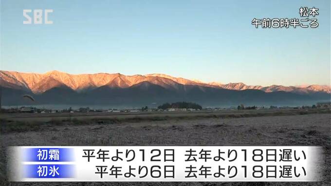 初霜は平年より12日 去年より18日遅く、初氷は平年より6日 去年より18日遅い観測です。