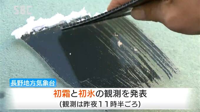 風が弱く、晴れたため 放射冷却がきいたということで、長野地方気象台は初霜と初氷を 昨夜11時半ごろ観測したと発表しました。