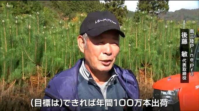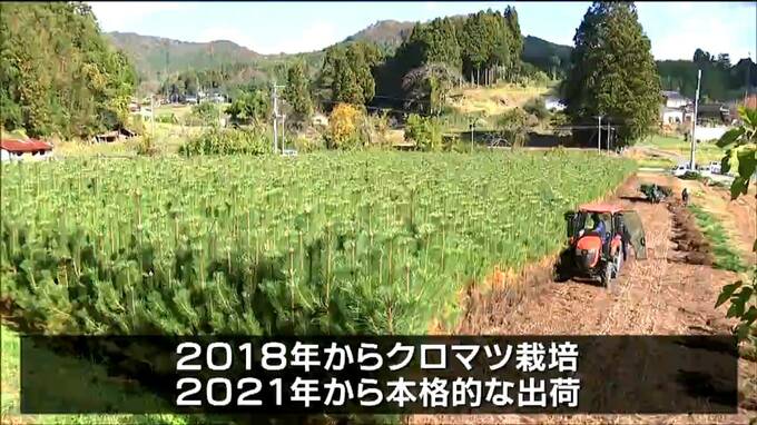 この農業法人では2018年から県内で初となるクロマツの栽培に取り組んでいて、2021年から本格的な出荷を始めました。クロマツは生命力が強く塩害を受けた土地や中山間地でも栽培が可能で、今年は町の内外、およそ4ヘクタールに作付けされました。