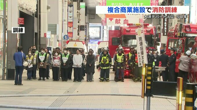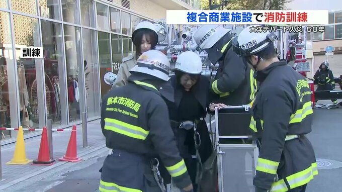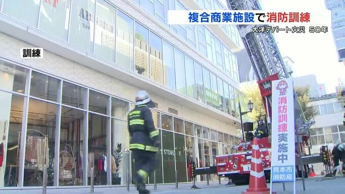 大洋デパート火災から11月29日で50年となるのを前に、熊本市の複合商業施設で消防訓練が行われました。