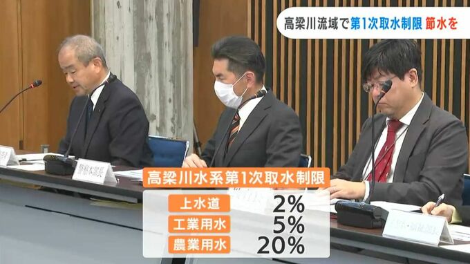 岡山県は、高梁川流域でけさ(14日)9時から上水道の2%、工業用水の5%、農業用水の20%をカットする第1次取水制限を始めています。