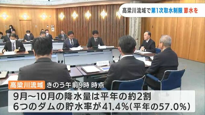 ダム貯水率の低下を受けて岡山県の高梁川流域では、15年ぶりの第1次取水制限が始まりました。現段階で水道水への影響はないものの状況が続けば、県民生活に支障をきたす恐れがあるとして、岡山県は節水を呼びかけています。
