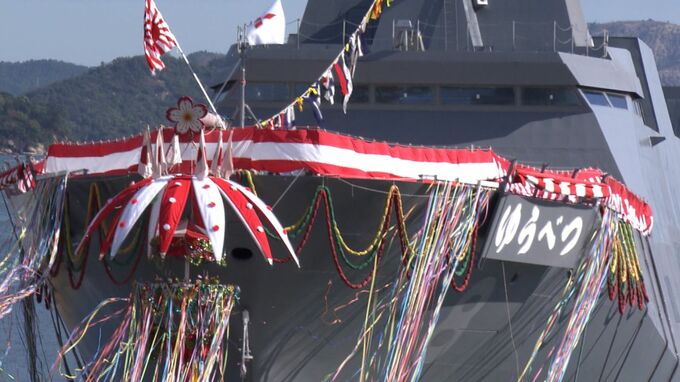 海上自衛隊の最新型護衛艦「ゆうべつ」の船体が完成し、玉野市で進水式が行われました。