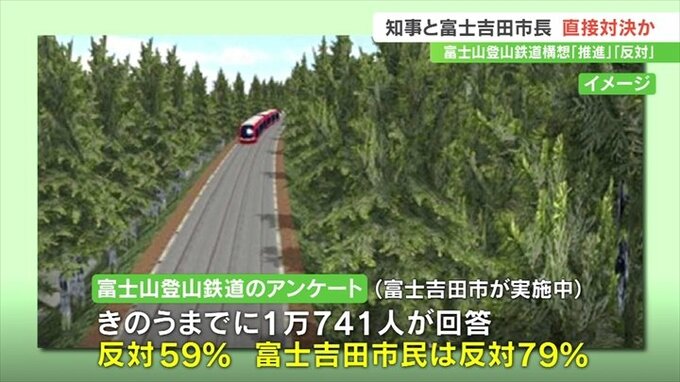 一方、堀内市長は市が実施している登山鉄道のアンケート調査の中間結果を公表し、回答した1万741人のうち全体の59%が反対、富士吉田市民に限ると79%が反対と明らかにしました。