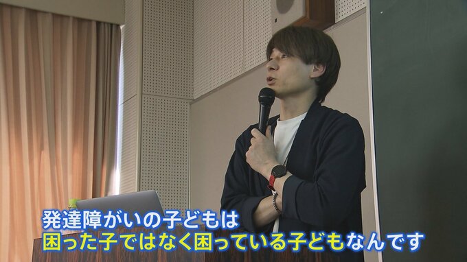 「実際いま僕がどういう風にしてやってるかというと、難しいことをみんな思いがちなんですけど、ほんの少しの配慮と工夫だけなんです。発達障がいの子どもは困った子どもではなくて、困っている子どもなんです。困っている子が目の前にいたらできませんって終わるんですか。僕は美容師ですから髪の毛を切ることで困っている子がいたら大丈夫だよって笑顔で手を差し伸べたいなと思っています」