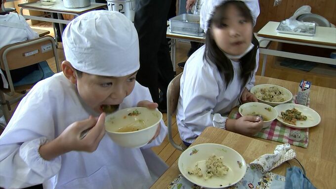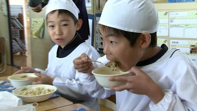 子どもたちは9月に工場で製造工程を見学していて、この日は給食を通じて地元のごま油について理解を深めたようでした。