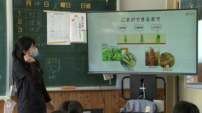 教室に香ばしいゴマの香りが広がりました。全国で約5割のシェアを持つ小豆島産ごま油の魅力を知ってもらおうと土庄町の小学校で食育授業が開かれました。