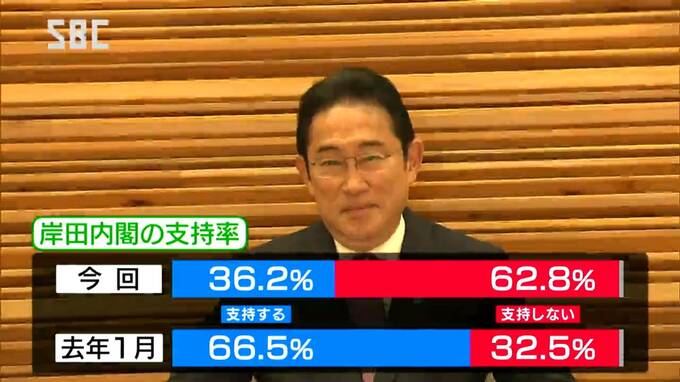 それによりますと、岸田内閣を「支持する」は36.2パーセント、「支持しない」は62.8パーセントで、支持が6割を超えた去年1月の調査から評価が逆転しています。