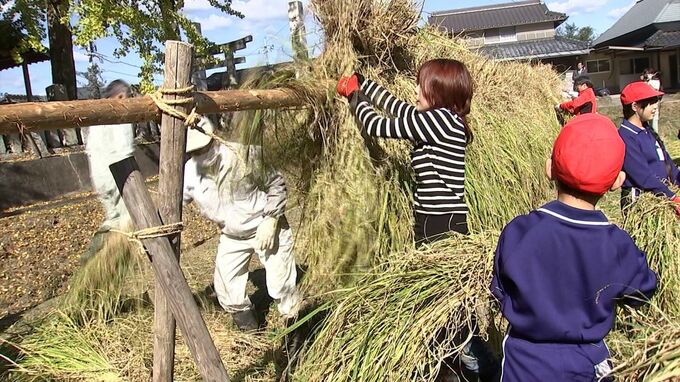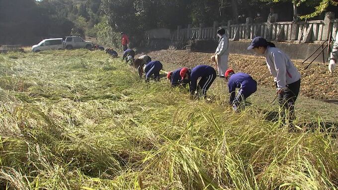 きょう(14日)収穫された赤米は、来月(12月)に行われる祭りで神社に供えられ、甘酒にして振舞われるということです。