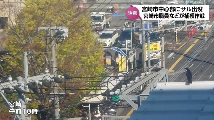 サルが出没したのは、宮崎市の中でも街の中心部。宮崎市の職員などによる捕獲作戦が繰り広げられました。