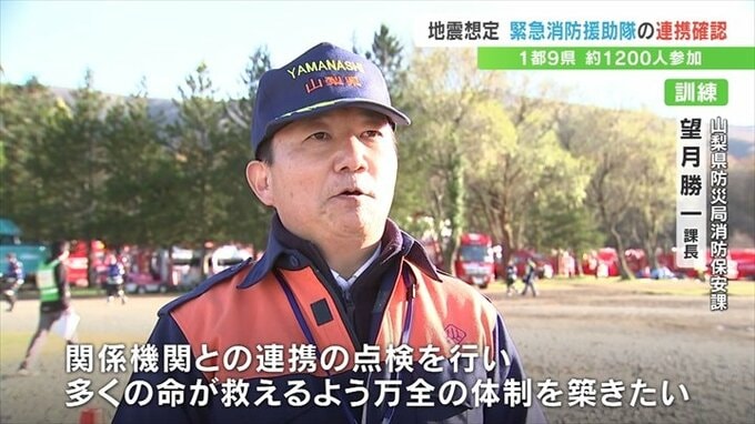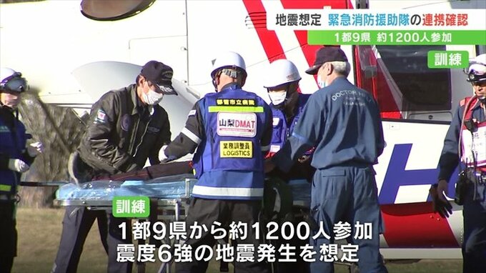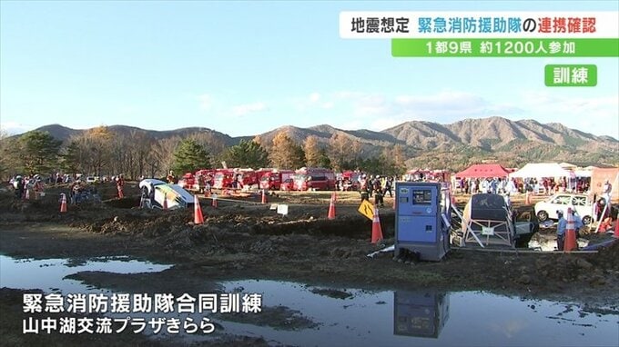この訓練は、大規模災害時に被災地に応援に入る緊急消防援助隊の連携を強めようと毎年行われているもので、山梨県での実施は20年ぶりです。