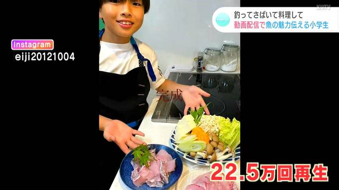 趣味は野球。毎日のように練習に励んでいます。そんな栄志くんにはもう一つの顔があります。インスタグラムで魚をさばく動画を投稿しているんです。その手つきは慣れたもの。