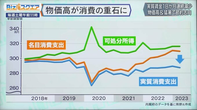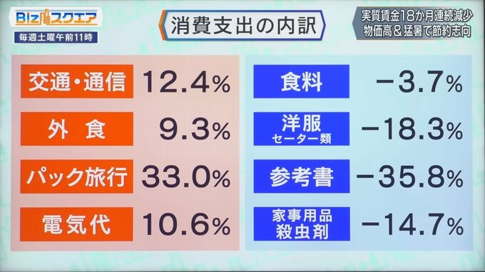 実質賃金18か月連続減少 物価高&猛暑で節約志向