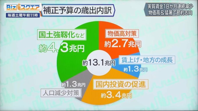 ――補正予算の内訳を見ると、総額13兆円のうち、物価高対策はわずか2兆7000億円。ガソリンや電気への補助金、低所得世帯への給付金がメイン。減税は来年の予算なのでまだ入ってない。