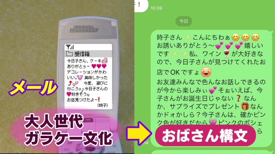 「大人世代は、最初にメッセージでのやりとりをしたのが、ガラケー文化の頃。ガラケーだと『メール』でのやり取りだったので、相手がいつ読むかわからず、一つのメッセージで要件が完結している必要があります。だから、文章が長いし、読みやすくするために句読点があったり、絵文字・顔文字とか『楽しい気持ちで送っていますよ』というのを表現した上で送るのが正しいマナーでした」