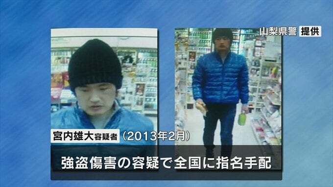 宮内雄大容疑者は、10年前の2013年2月に山梨市の住宅に侵入した疑いで逮捕されましたが、移送先の日下部警察署でパトカーから降りた直後に逃走しました。