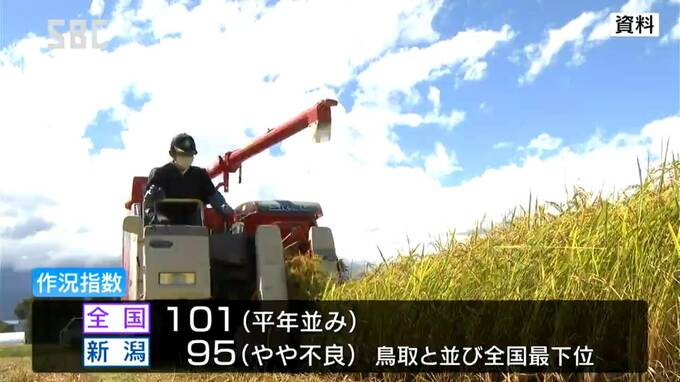全国の作柄は平年並みの101で、隣の新潟県は猛暑の影響で全国最下位の95となりました。
