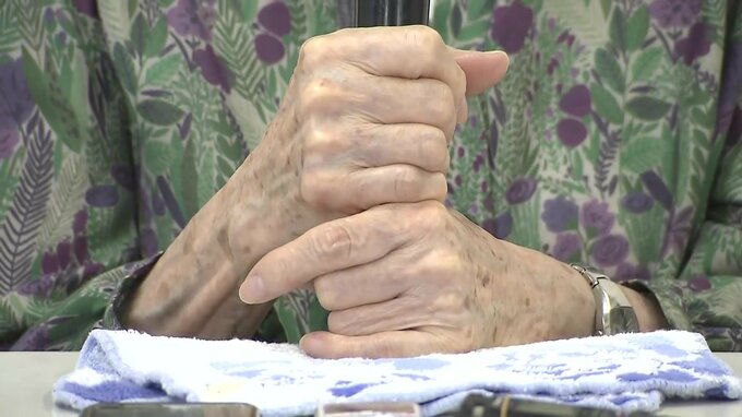 87歳となり細く、か弱くなった早紀江さんの手は、マイクを強く握りしめます。
