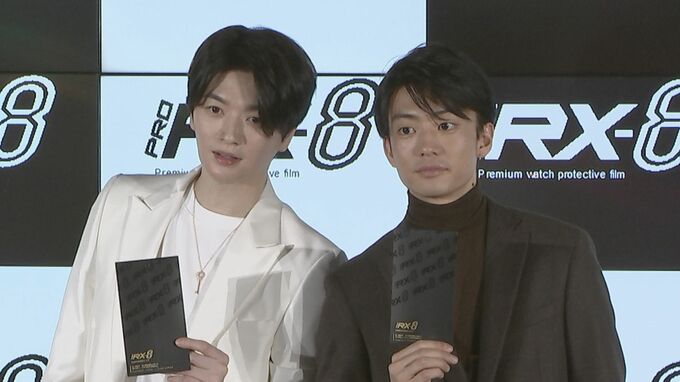 俳優の伊藤健太郎さんと、韓国の5人組男性グループSUPERNOVA(超新星)のメンバー、キム・ソンジェさんが、高級腕時計用の保護フィルム「RX-8 新CM発表会」に出席しました。