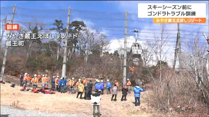 スキーシーズンの到来を前に、宮城県蔵王町のスキー場でゴンドラを使った救助訓練が行われました。