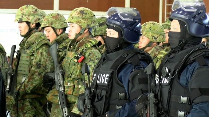 警察の力だけでは治安を維持できない緊急事態に対処できるようにと、2006年に始まったものです。「強力な武器をもった武装工作員が国内に侵入した」との想定で行われ、パトカーの先導で自衛隊車両を目的地に誘導する緊急展開の模様が公開されました。