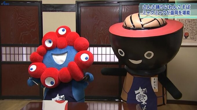 盛岡を訪れている大阪・関西万博の公式キャラクターが15日、さんさ踊りやわんこそばを通じて再来年の開催をPRしました。赤と青のユニークな形が目を引くのは大阪・関西万博公式キャラクターの「ミャクミャク」です…