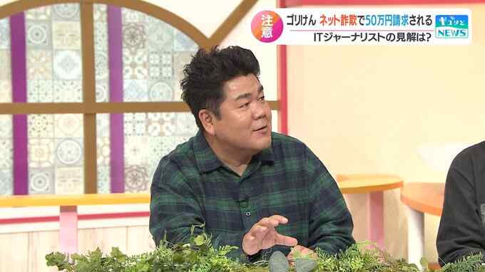 「やったことないんですよ」と身に覚えがないことを強調するのは、テレビ番組に出演したタレントのゴリけんさんだ。一度もプレイしたり、ダウンロードしたりした覚えのない中国語のゲームアプリ。そのアプリ内で7,000円分を“課金”したとされる請求が、わずか10分のうちに60回以上も連続して届いたという。「開封する暇もありませんでした」と肩を落とした。請求先の欄には、ゴリけんさんの本名「町田健一郎」の名前とPayPayの表記。これに「思い当たる節がある」とゴリけんさんは話す。