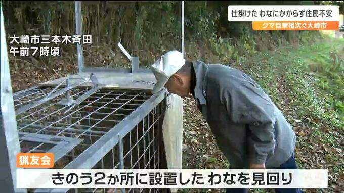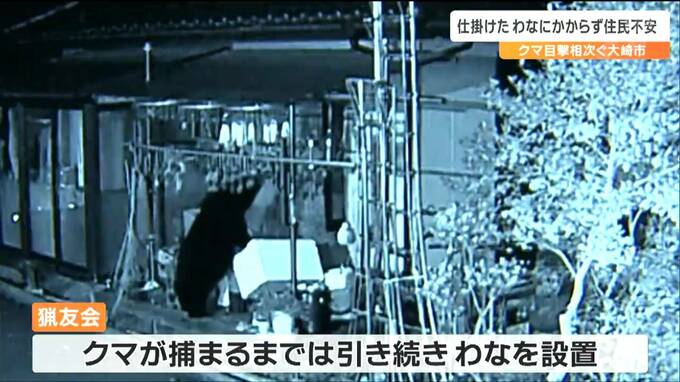 軒先の柿を食べるなどのクマの目撃が続く宮城県大崎市では15日、猟友会が、仕掛けたわなを見回りました。しかし、クマの捕獲には至らず住民は不安な日々を過ごしています。