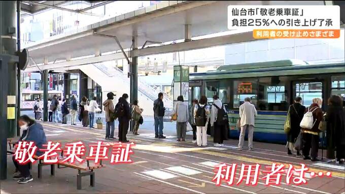 70歳以上を対象にした仙台市の「敬老乗車証」について、有識者による専門分科会で利用者の負担割合を25%に引き上げることが了承されました。利用者からは、負担が増えることへの懸念など様々な声が聞かれました。…