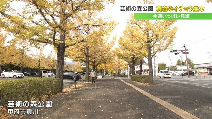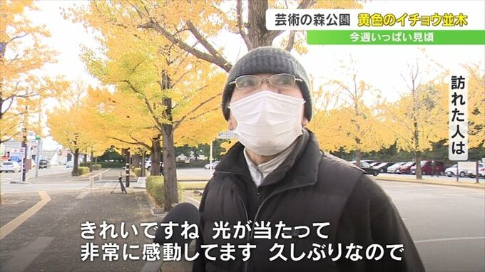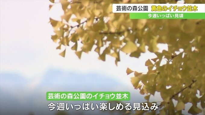 芸術の森公園のイチョウ並木は今週いっぱい楽しめるということです。