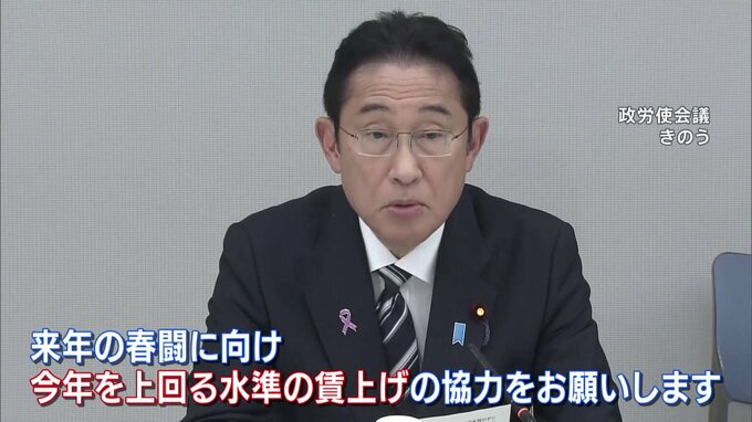 政府は、経済界と労働界の代表らと話し合う「政労使会議」を開き、岸田総理が来年の春闘で今年を上回る賃上げを経済界に要請しました。岸田総理「デフレ完全脱却を実現する。来年の春闘に向け、今年を上回る水準の…