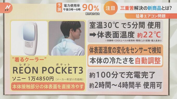 ソニーから「REON POCKET3」というものが発売(メーカー希望小売価格1万4850円)されています。本体接触部分の体の表面を、直接冷やしてくれます。室温が30度で5分間使用した場合、体の表面温度を約22度まで下げてくれるんです。(※安静時・COOLレベル4使用時・環境により変動・個人差あり)