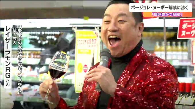 フランス産ワインの新酒、ボージョレ・ヌーボーの販売が、16日午前0時に解禁されました。仙台市内のスーパーではこの日を待ちわびた人たちが、スペシャルゲストとともに解禁を祝いました。「3、2、1ボージョレ・ヌ…