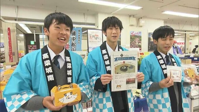 高梁産の黒米粉をふんだんに使ったロールケーキは、高梁城南高校の生徒が地元のケーキ店と考案したものです。