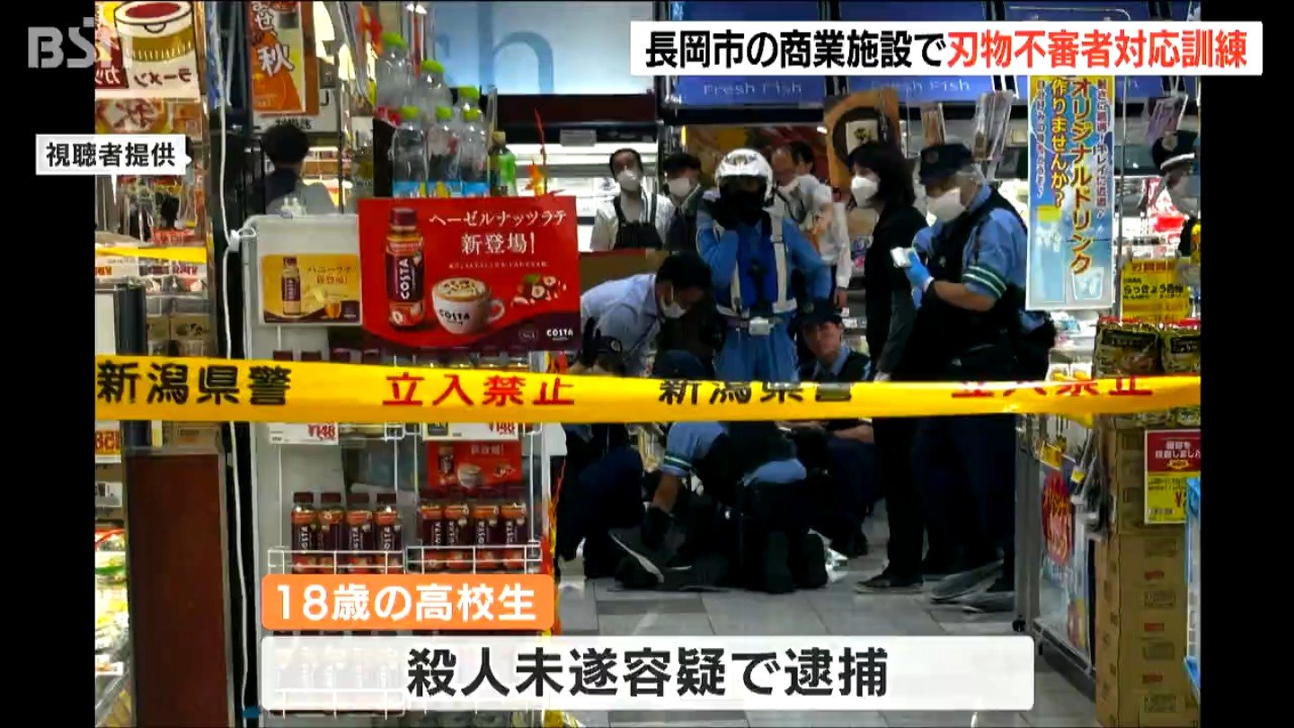 長岡市の別の商業施設では9月に買い物客ら3人が包丁で切り付けられ、けがをする事件が発生し、18歳の高校生が殺人未遂の疑いで逮捕されました。