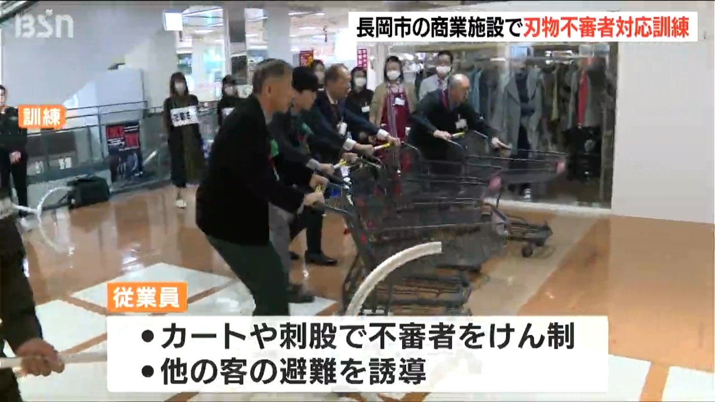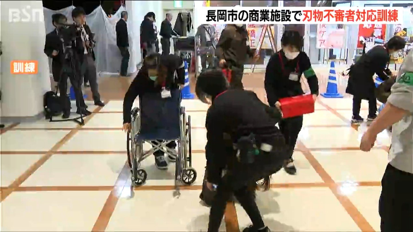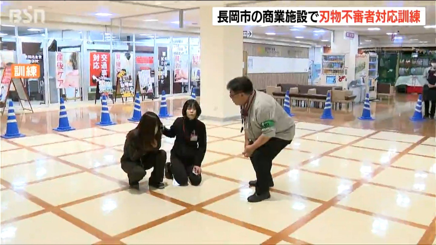 客が増える年末を前に、新潟県長岡市の商業施設で刃物を持った不審者に対応する防犯訓練が行われました。