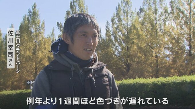 黄色から赤茶色に一日一日表情を変える富士川クラフトパークのメタセコイアは12月上旬までが見ごろということです。