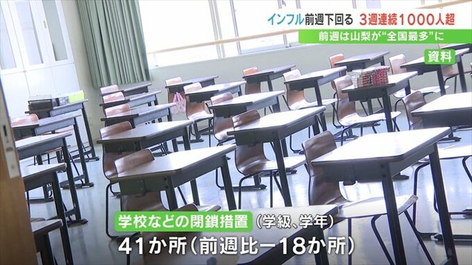 県内の学校などでは41か所で学年閉鎖などの措置がとられていて、これは前の週の59か所から18か所減っています。