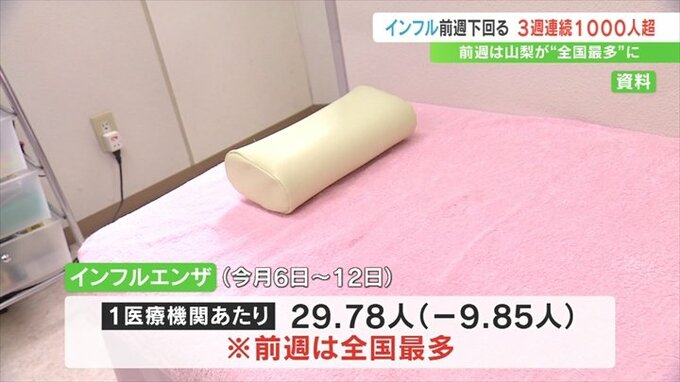 1医療機関あたりの患者の数が全国最多となった、山梨県内のインフルエンザ。
