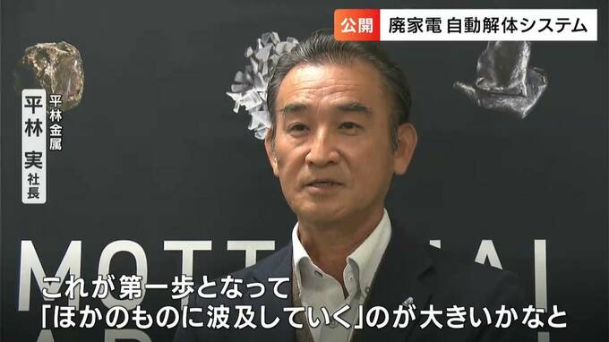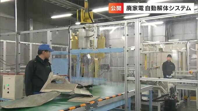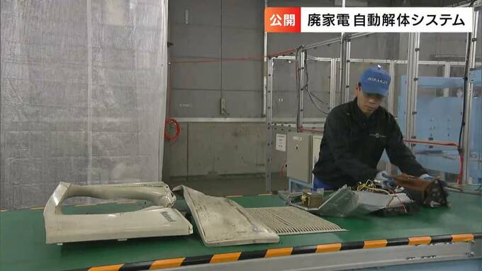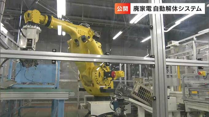 廃棄された家電のリサイクルの効率をあげるために、「全自動で解体するシステム」の見学会が岡山市北区で開かれました。