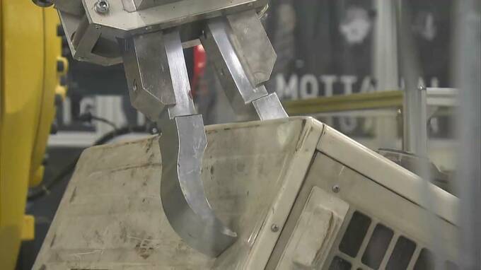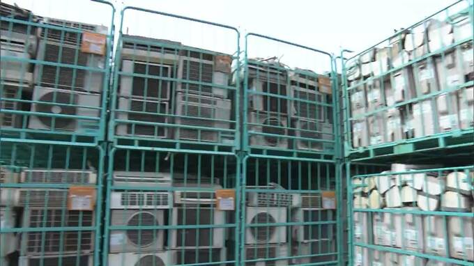 ロボットが、エアコンの室外機を解体していきます。さまざまな資源のリサイクルを手がける平林金属が、パナソニックプロダクションエンジニアリングの実証実験に協力して開発を進めるシステムです。