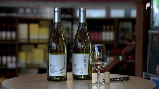 御殿場市のワイナリーで作られている「シャルドネ・ヌーボー」。自社の畑で栽培したブドウを使っています。