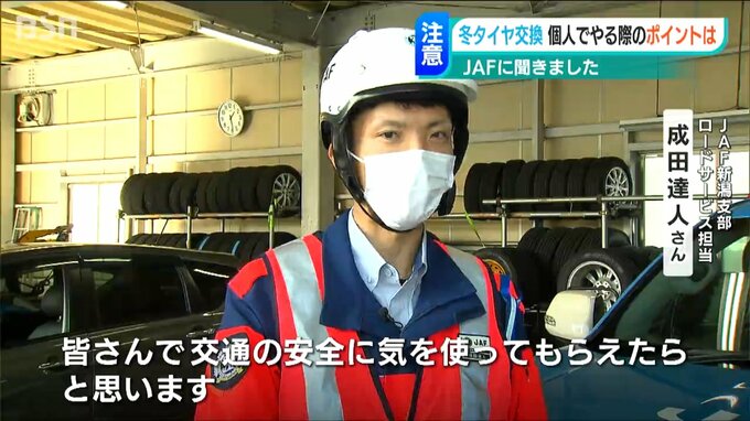 日本自動車連盟(JAF)の新潟支部によりますと、タイヤ交換したばかりの車が多い冬の始め頃には、タイヤが外れる“脱輪”でのロードサービス依頼が増えるそうです。