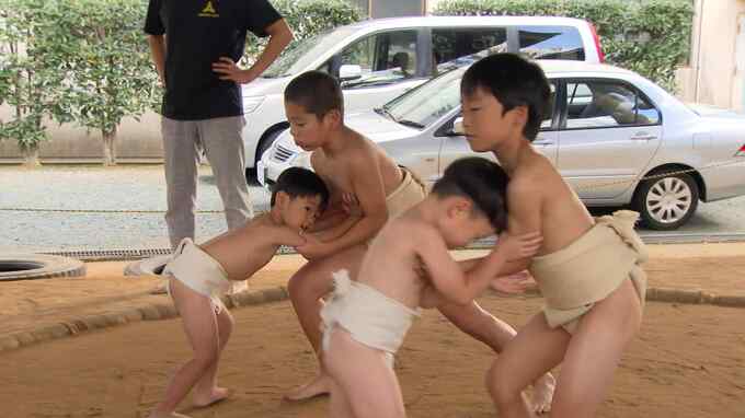 福岡市中央区を拠点に活動する「住吉相撲クラブ」。未就学児から小学6年生までの10人が週に1度、稽古をしています。