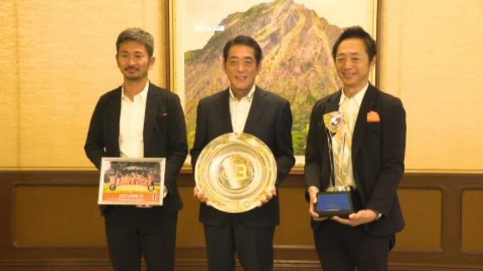 11月11日に伊予決戦を制し、サッカーJ3の優勝とJ2昇格を決めた愛媛FC。17日、社長らが愛媛県庁を訪れ、中村知事に喜びを報告しました。(愛媛県・中村時広知事)「いやーやりましたね、おめでとう」県庁を訪れた…
