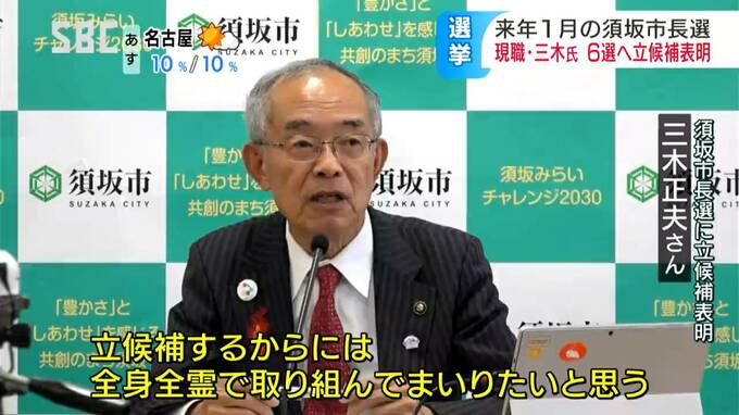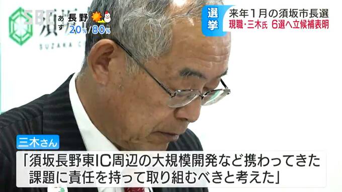 2024年1月に行われる須坂市長選挙で、現職で5期目の三木正夫さんが立候補を表明しました。