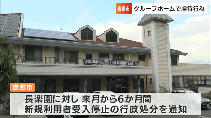 倉敷市は「長楽園」に対し、来月(12月)から6か月間、新規利用者の受け入れ停止処分を通知しました。