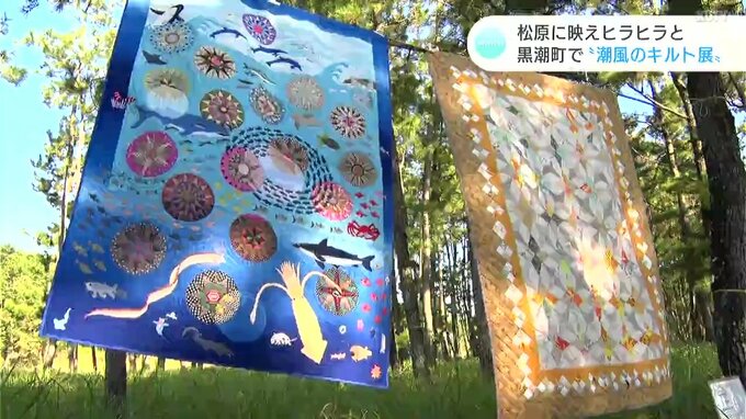 手作りした、カラフルなパッチワークキルトの魅力に触れてもらおうという作品展が高知県黒潮町で開かれています。淡い赤紫色の花が咲くラッキョウ畑。畑に沿って広がる黒潮町の入野松原で17日から始まったのは“潮…
